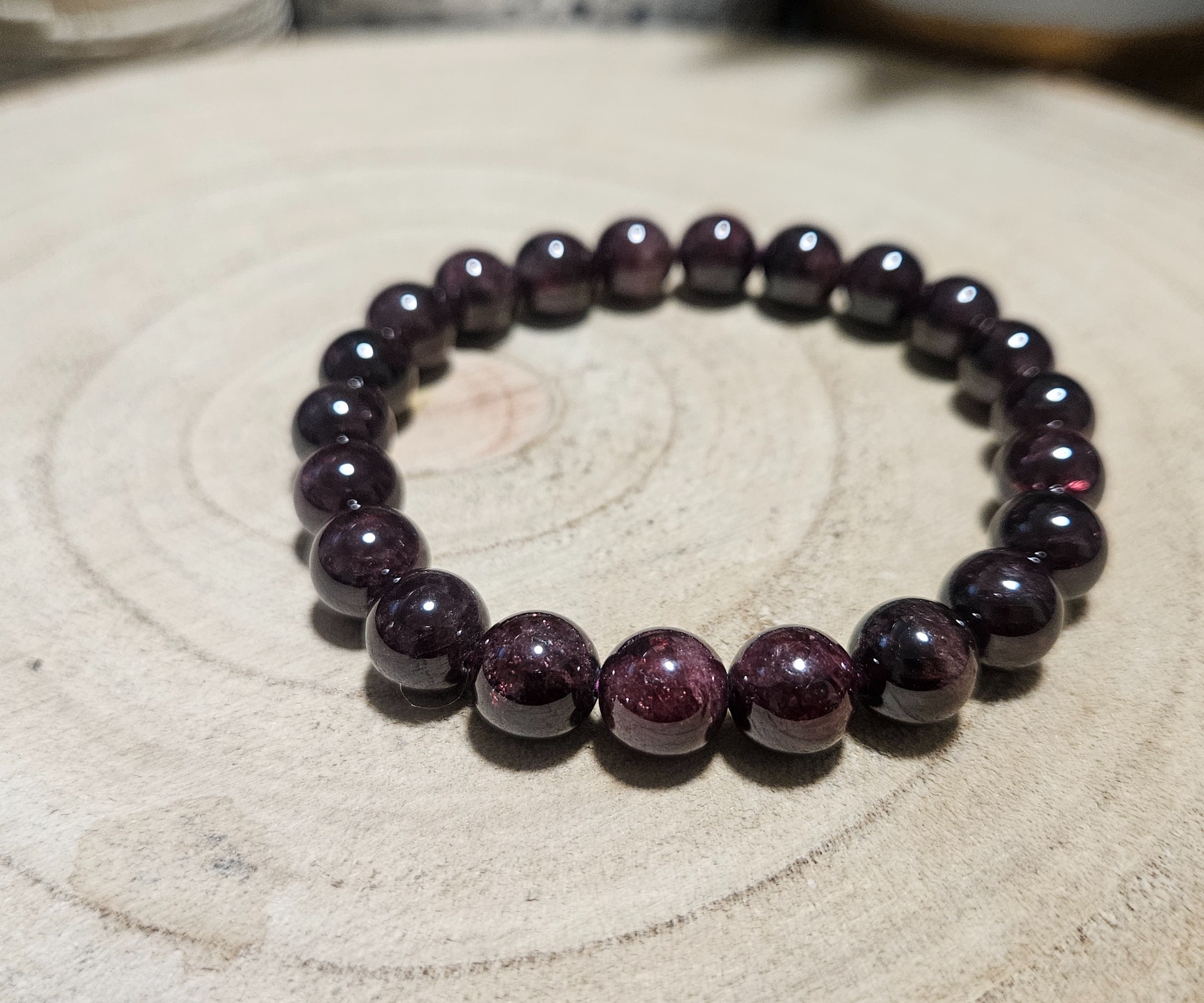 Ezt a karkötőt neked választottam, ha valami klasszikusra vágysz, ami közben tele van belső erővel. Gyönyörűen polírozott, 8 mm-es gránát szemek alkotják, melyek a legmélyebb borvörös színben pompáznak, amit csak el tudsz képzelni. Amint a csuklódra teszed, érezni fogod a kövek kellemes súlyát és sima felületét, amely végigkísér a napodon. Erős gumidamilra fűztem neked, így nem kell a kapcsolódással bajlódnod – csak egyszerűen felhúzod, és ő szeretettel idomul hozzád. A gránát ebben a méretben a te hűséges őrződ; segít átvészelni a nehéz időszakokat, felébreszti benned az örömöt és bátorságot ad a fontos döntésekhez. Ez egy olyan ékszer, amely emlékeztet: benned is ott lobog a tűz, ami sosem alszik ki.