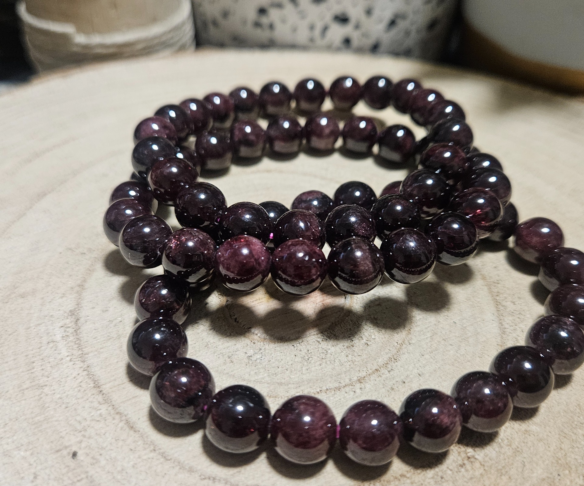 Megjelenés: Időtlen dizájn 8 mm-es polírozott szemekből, mélyvörös, szinte feketébe hajló árnyalatokban.