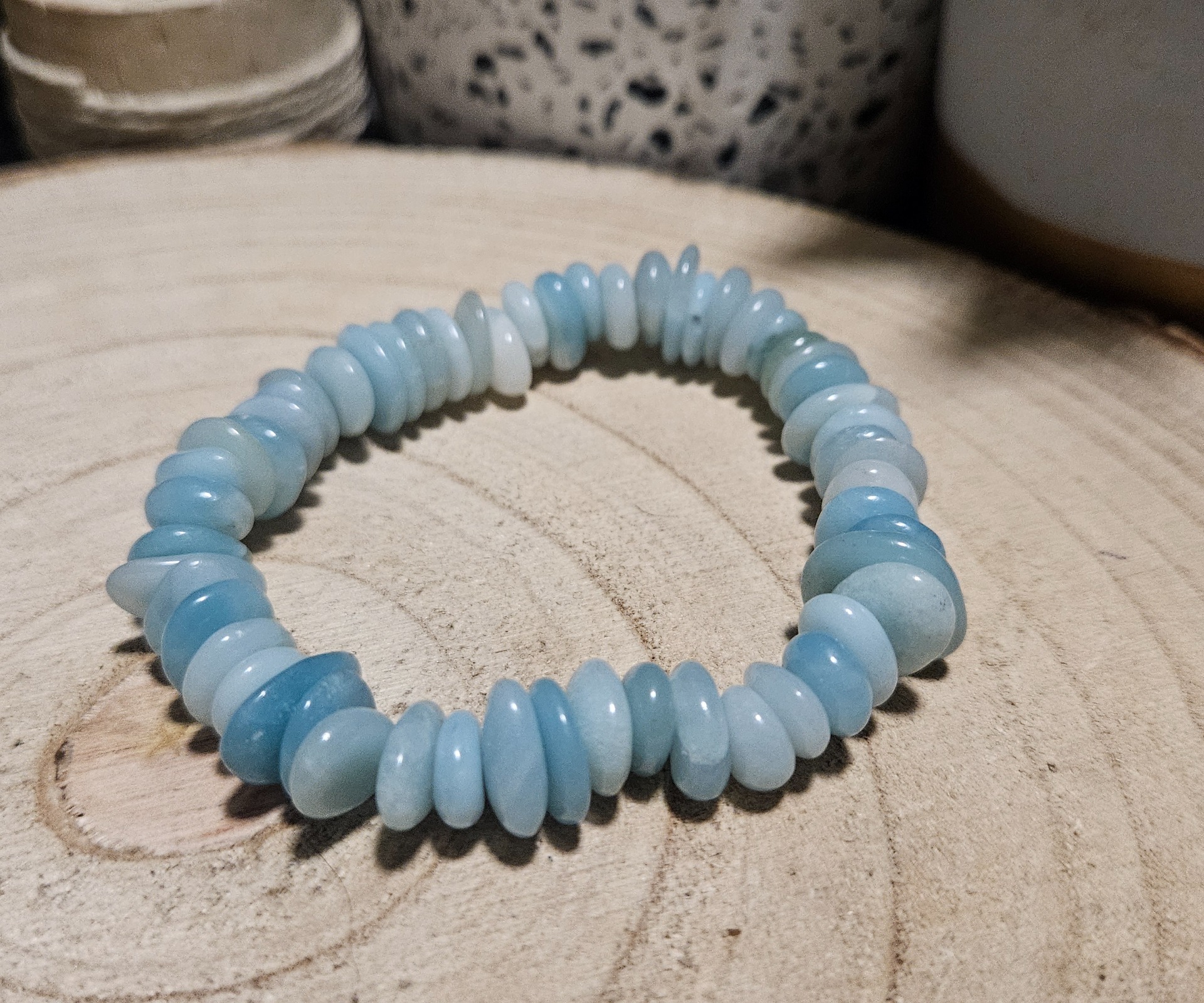 Tento ručne navlečený ruský amazonitový náramok oslavuje prirodzenú, rustikálnu krásu kameňa. Ploché, okrúhle a leštené kúsky v tvare šošovky dokonale do seba zapadajú a ukazujú upokojujúce modrozelené odtiene amazonitu. Náramok je navlečený na elastickú šnúru, ktorá zaisťuje flexibilné a pohodlné nosenie na zápästí s obvodom 16-18 cm.