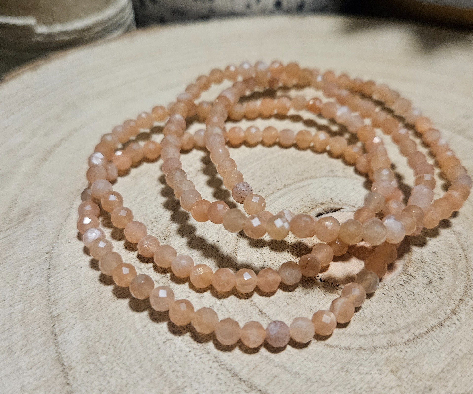 Ez az elegáns narancs holdkő karkötő a 4 mm-es gyöngyök finomságát ötvözi a precíz fazettált csiszolással. A csiszolt felületeknek köszönhetően a karkötő minden mozdulatnál gyönyörűen csillog és veri vissza a fényt, kiemelve az ásvány természetes szépségét. A narancs holdkövet a pozitív energia, a termékenység és az érzelmi támogatás köveként ismerik. Meleg, naplementét idéző színe optimizmust és biztonságérzetet hoz viselője életébe. A gyöngyök diszkrét mérete miatt ideális mindennapi viseletre, akár önmagában, akár más ékszerekkel kombinálva.