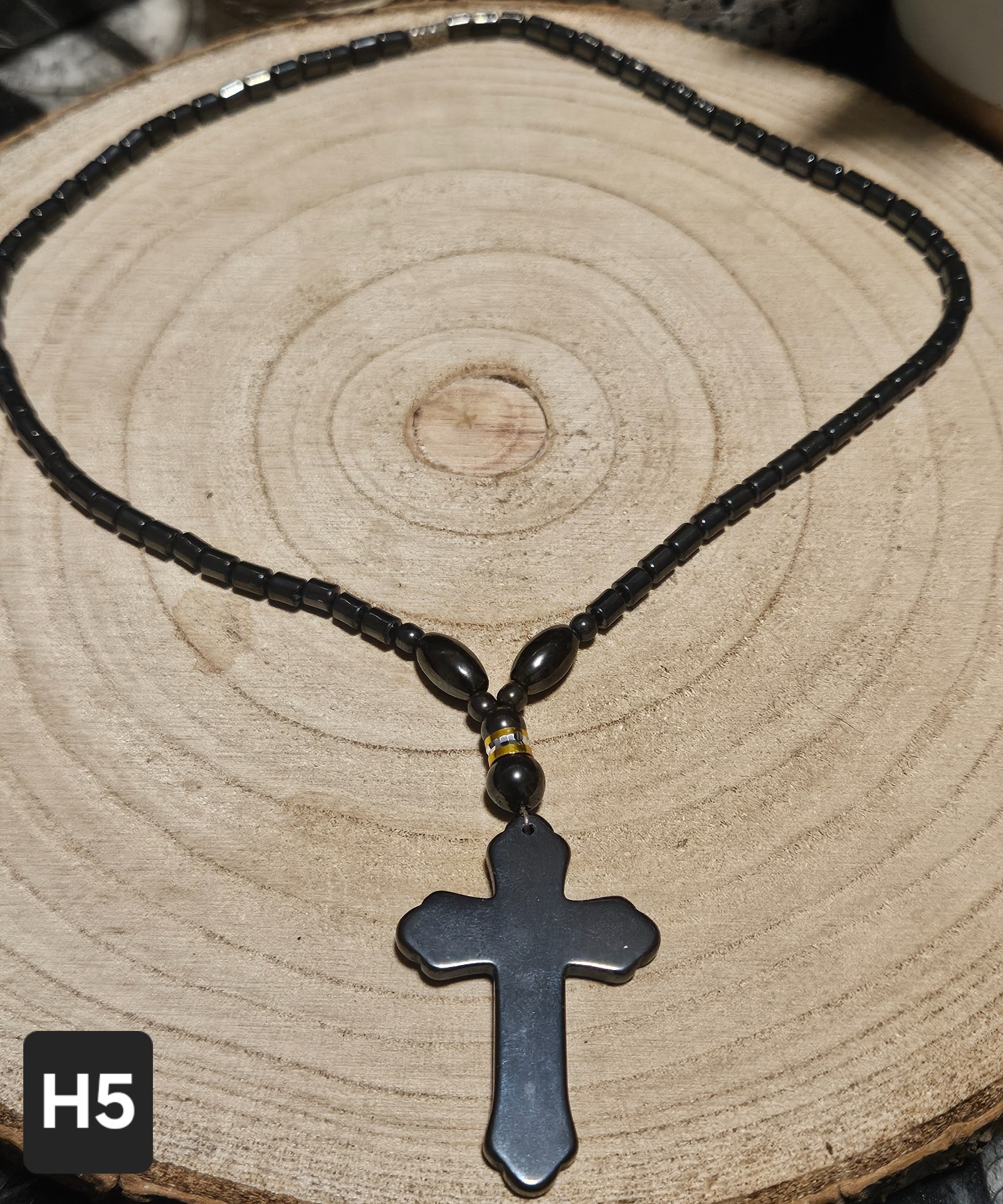 A spirituális emelkedettséget tükröző, ívesen kidolgozott kereszt. Az ékszer formája a fentről érkező védelmet jelképezi, miközben az ásvány anyaga gondoskodik a földi stabilitásról. Egyszerre művészi ékszer és védelmező pajzs a negatív hatások ellen.
