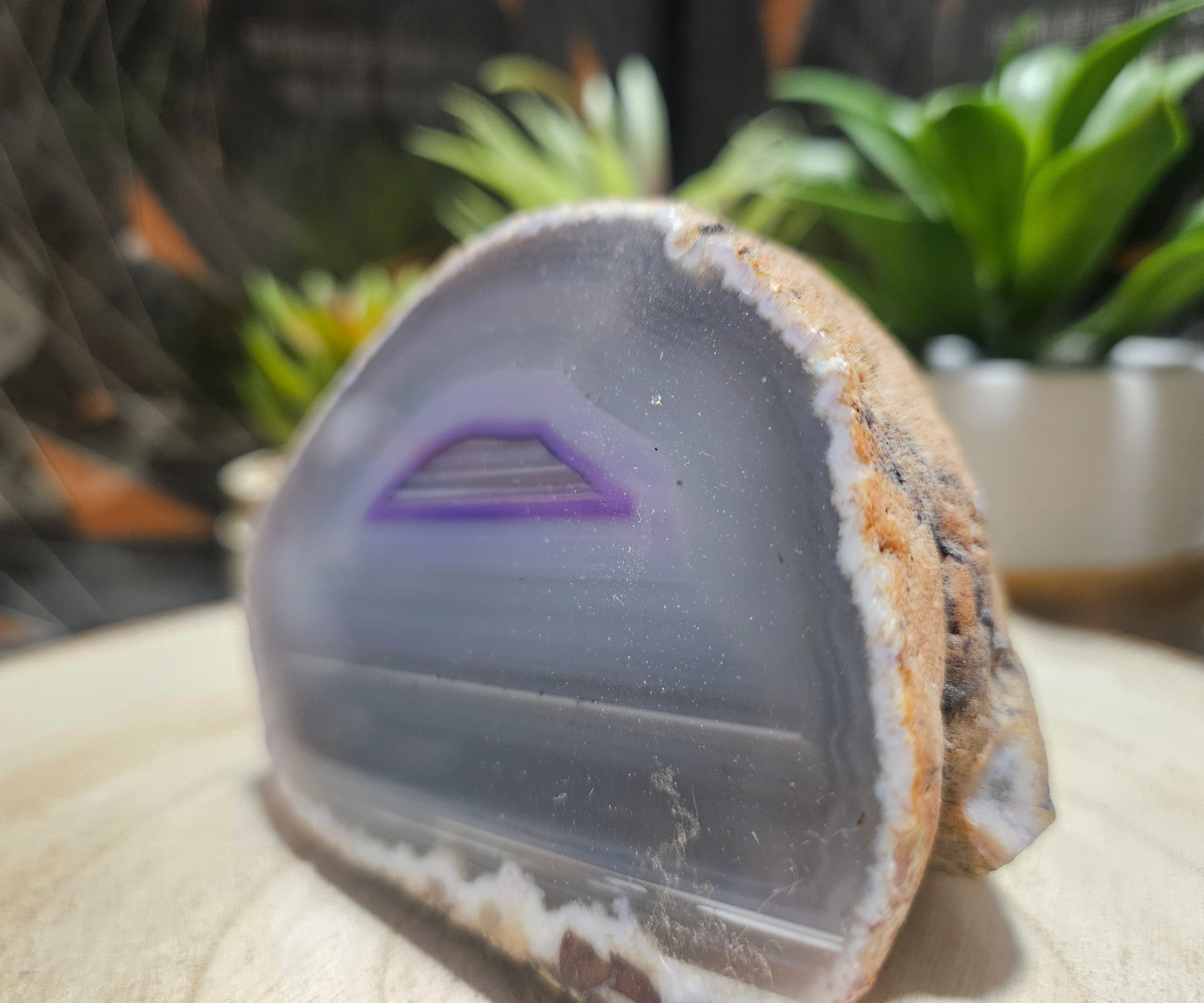 Természetes színű, polírozott achátfelek lapos talppal és enyhe színezéssel.Papírnehezéknek vagy belső dekorációnak alkalmasak.