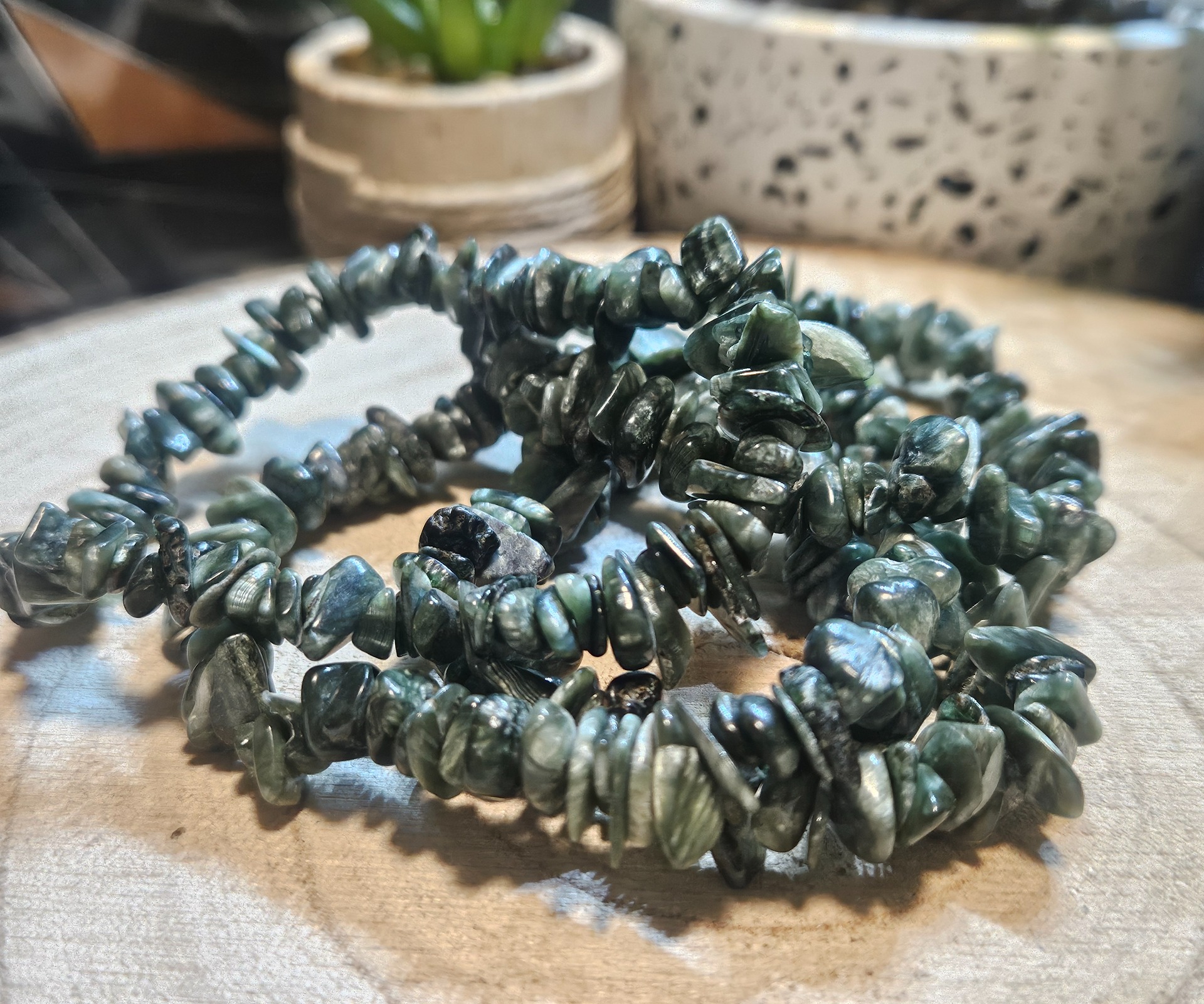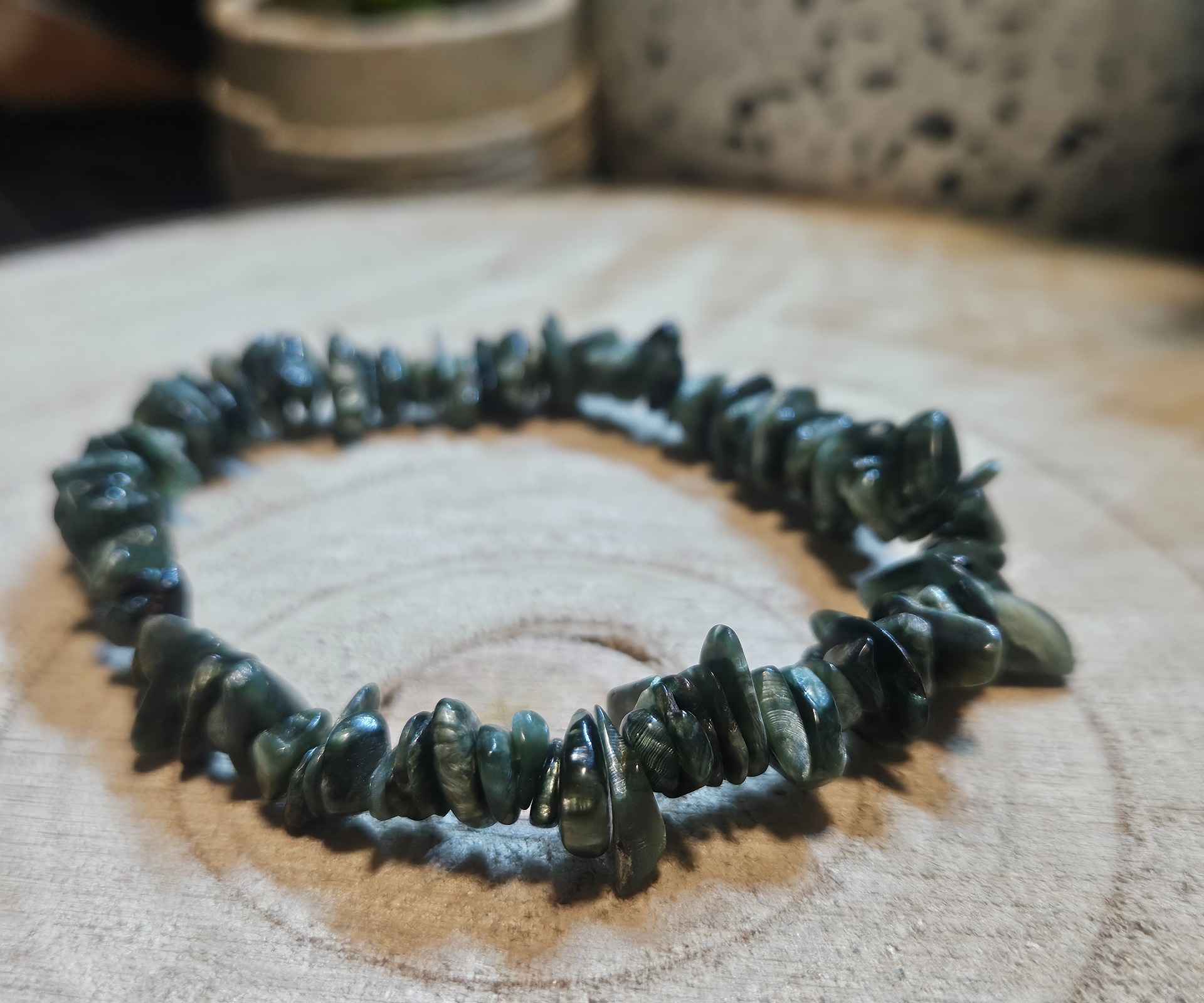 Ak cítite, že potrebujete spirituálnu oporu v každodennom chaose, alebo vás jednoducho priťahujú hlboké zelené odtiene prírody, serafinit bude vaším dokonalým spoločníkom. Pomáha nájsť citovú rovnováhu a nastoliť vnútorný pokoj. Je to vynikajúca voľba aj ako darček, ak chcete darovať niečo skutočne jedinečné a zmysluplné.