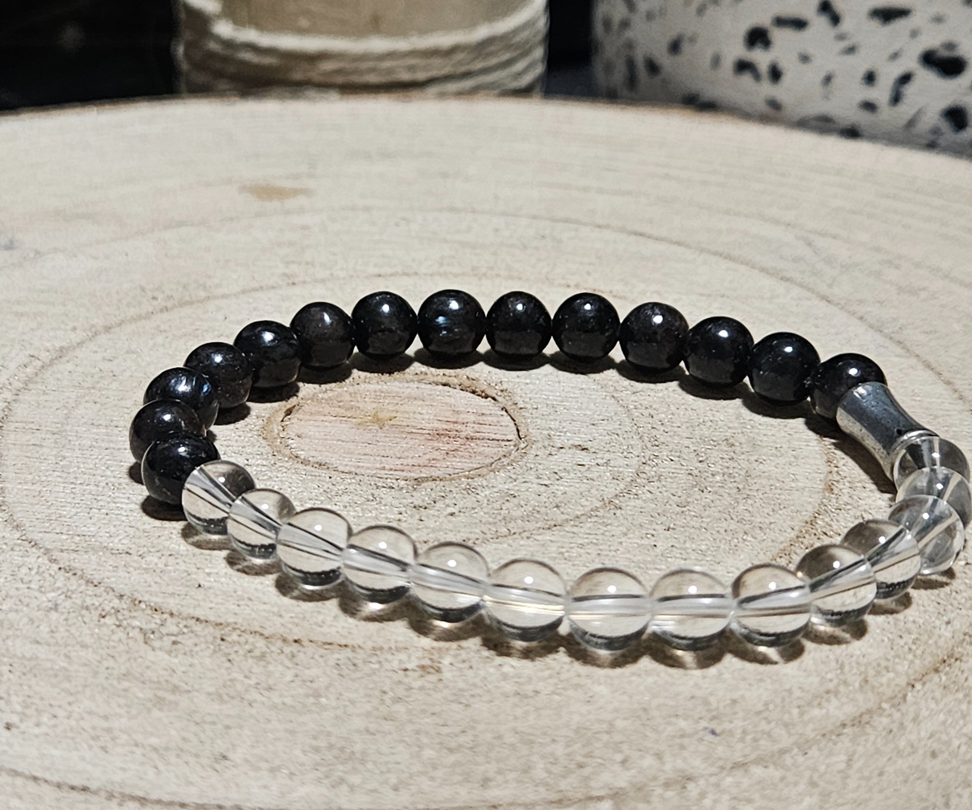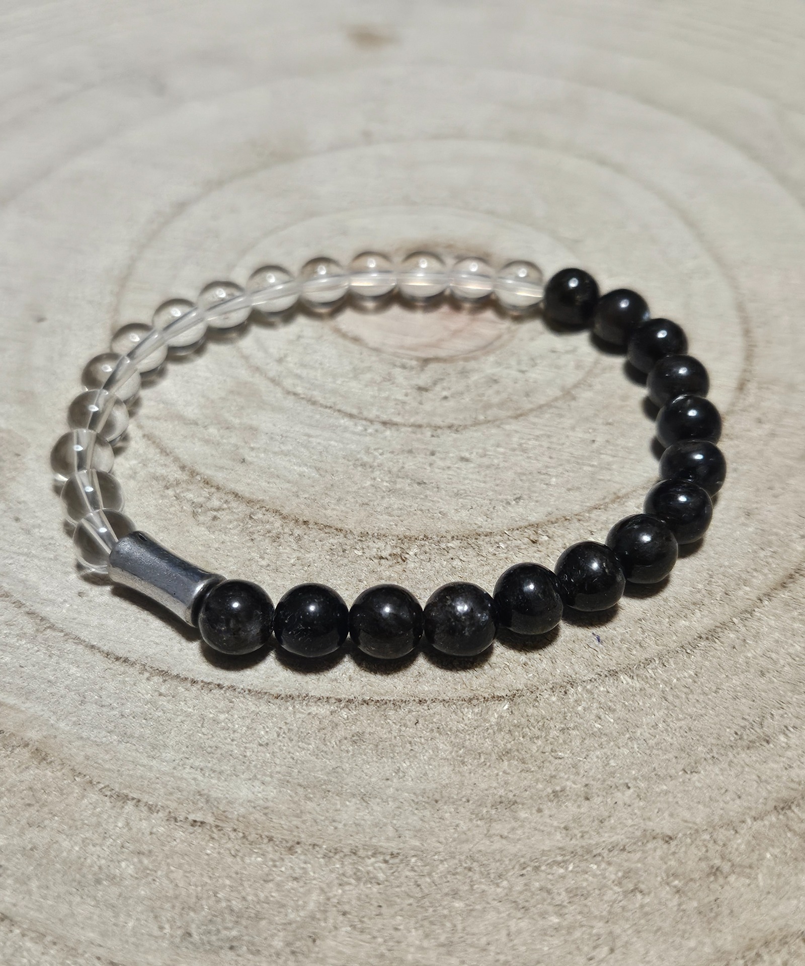 Ásványok: Válogatott, prémium Serafinit (6 mm) és Hegyikristály (6 mm).