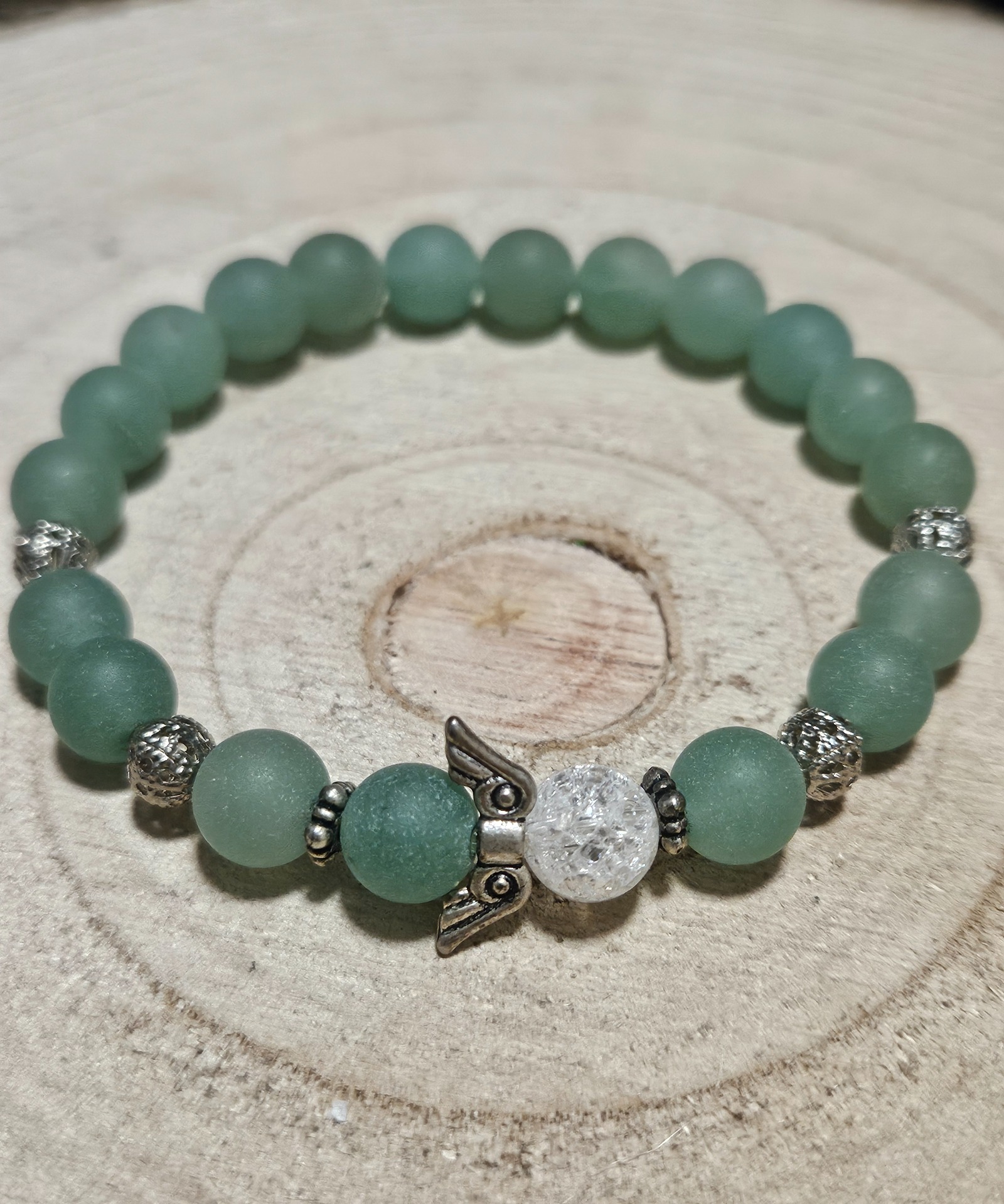 Mystika náramku Imperial Angelic Serenity sa zameriava na nebeskú ochranu a vnútornú jasnosť. Anjelské krídla symbolizujú prítomnosť duchovných sprievodcov a bezpečie. Aventurín priťahuje prosperitu, zatiaľ čo krištáľ vnáša svetlo do myšlienok. Keďže ide o Handmade produkt vyrobený vlastnoručne, každý detail nesie v sebe osobitnú starostlivosť a pozitívny zámer. Je to dokonalý talizman pre tých, ktorí hľadajú ochranu a chcú kráčať životom s ľahkosťou a čistou mysľou.