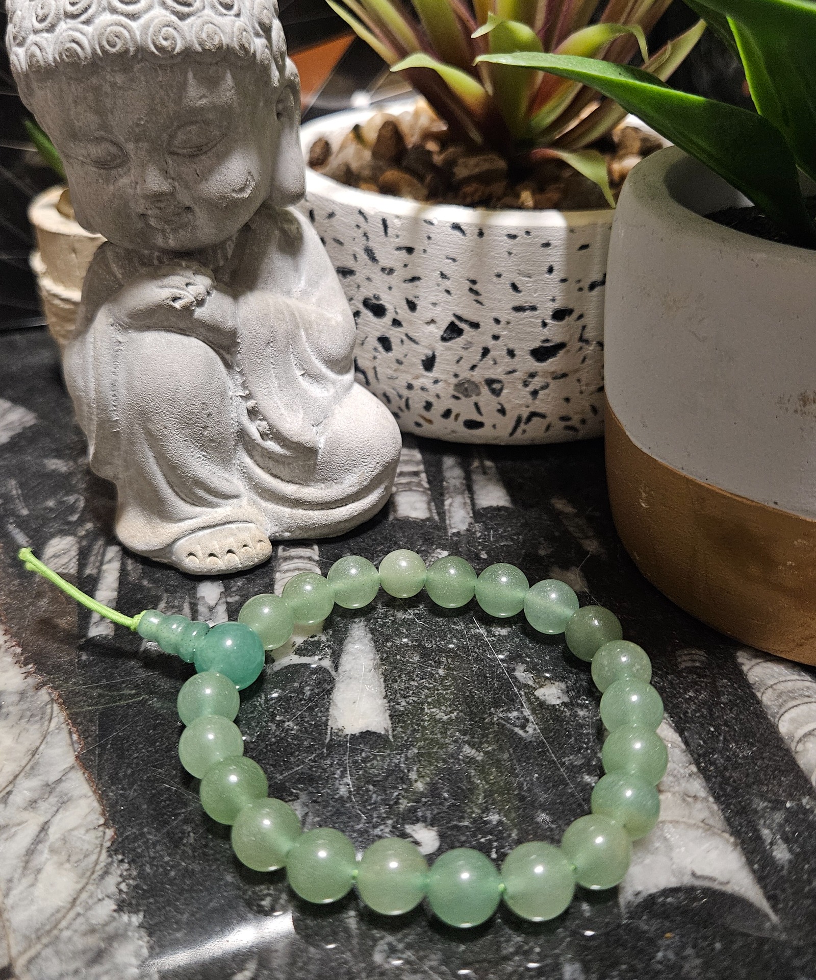 Ez a kivételes "Imperial Buddha’s Protection" energetizáló karkötő azok számára készült, akik mély belső egyensúlyt és spirituális útmutatást keresnek. A karkötő prémium minőségű, 8 mm-es természetes zöld aventurin golyókból áll, melyet egy domináns, 10 mm-es „Guru szem” (fő golyó) egészít ki. Az ékszer erős, rugalmas gumidamilra fűzve készül, ami biztosítja a csuklóhoz való tökéletes illeszkedést és az egész napos kényelmet.