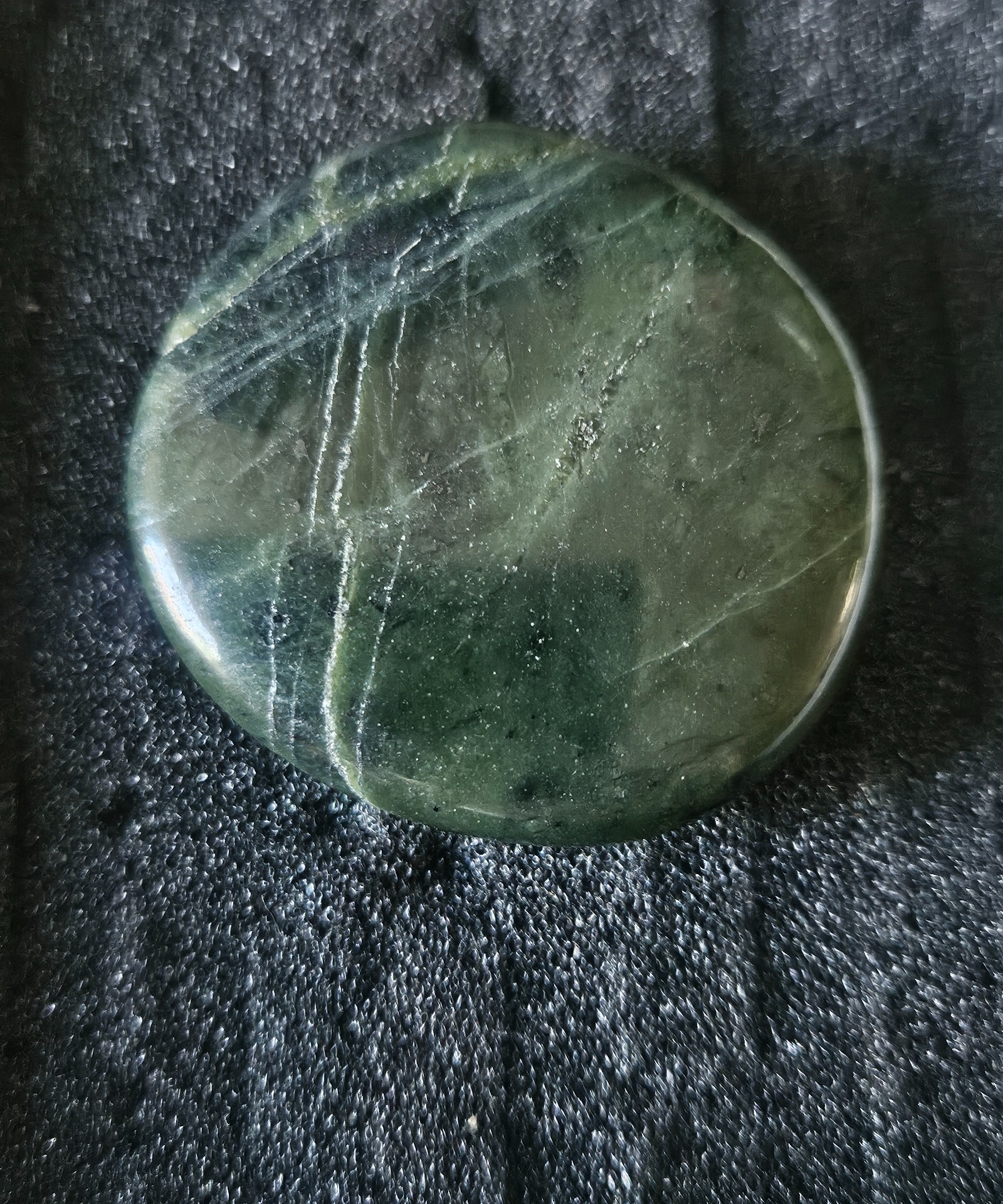 Type: Polished nephrite palm stone (Worry Stone).