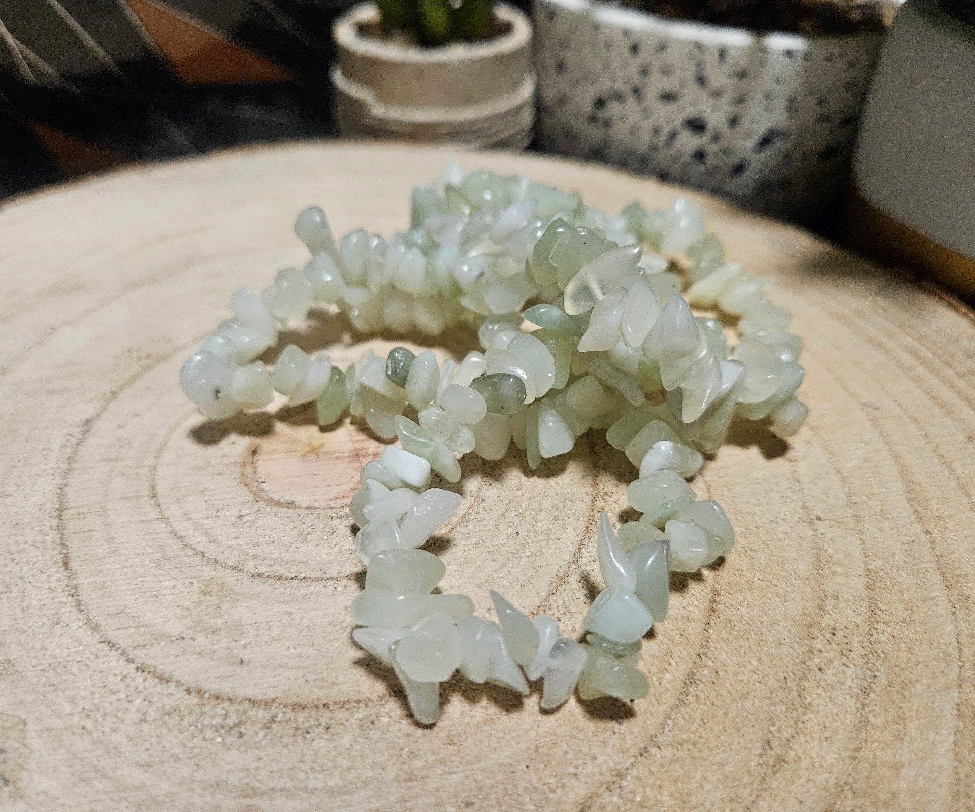 Fedezd fel a természet érintetlen erejét ezzel a különleges jadeit splitter karkötővel. A szabálytalan, jeges-zöld szemcsék nyers szépsége a természet örök körforgását és a megújulást jelképezi. A jadeit évezredek óta a Kelet legbecsesebb köve, amely nemcsak ékszer, hanem egyfajta spirituális pajzs is a viselője számára.