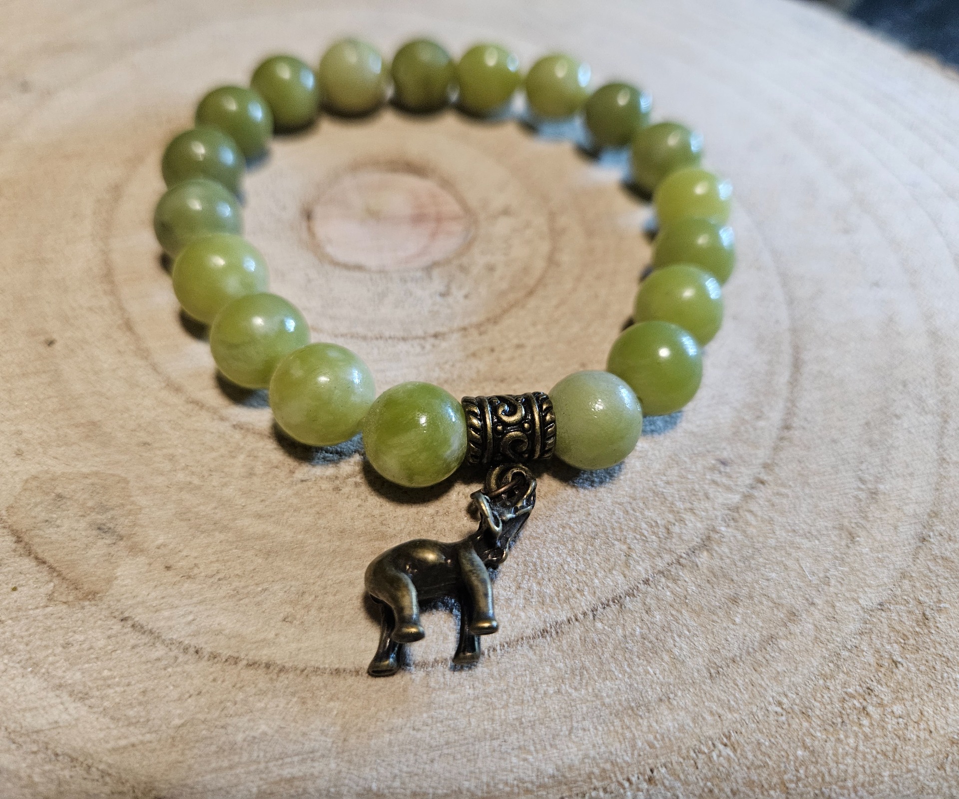 Attract the power of longevity and stability with this unique jade bracelet. The purity of the 8 mm jade beads and the symbolism of the small elephant charm provide perfect protection and support in your daily life. The elephant is a symbol of wisdom, perseverance, and loyalty, which—paired with the luck-bringing power of jade—becomes a true talisman on your wrist. The 20 cm size and elastic cord ensure maximum comfort. A handcrafted piece in true Imperial Minerals quality.