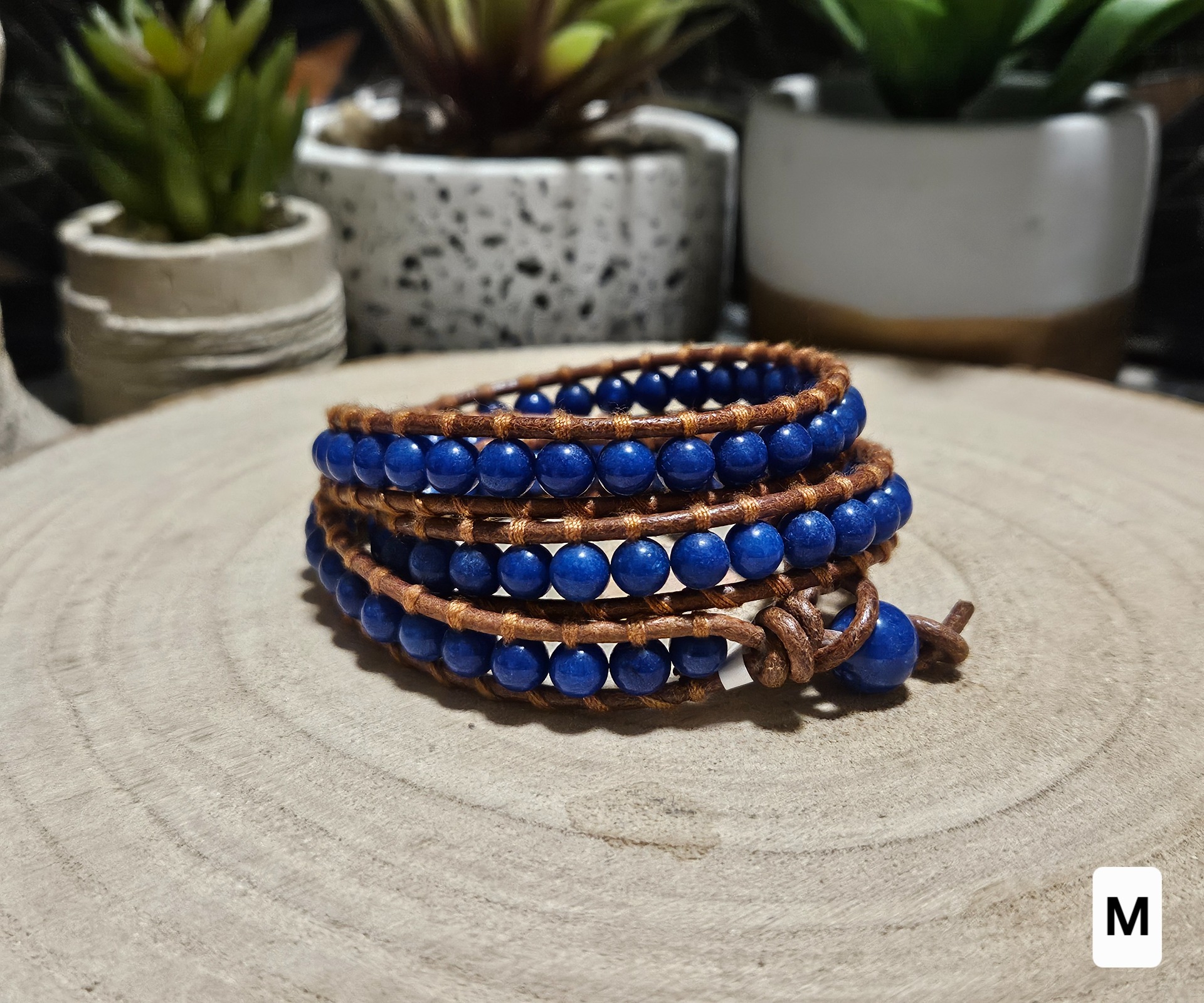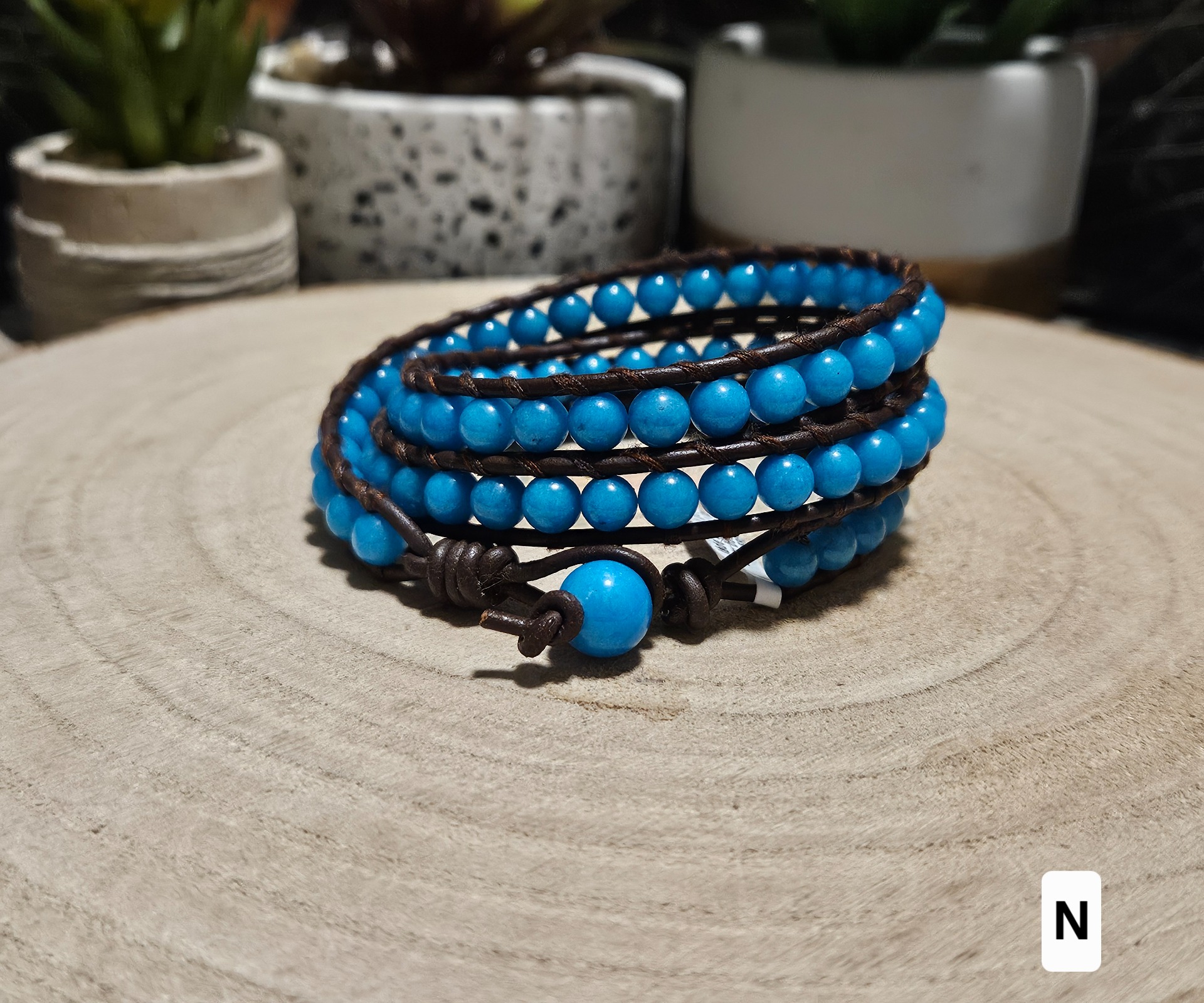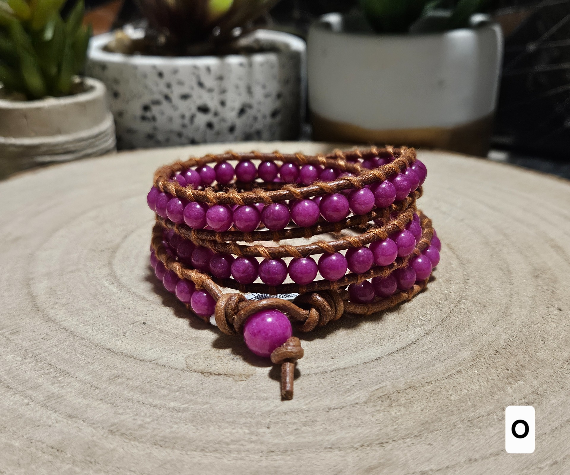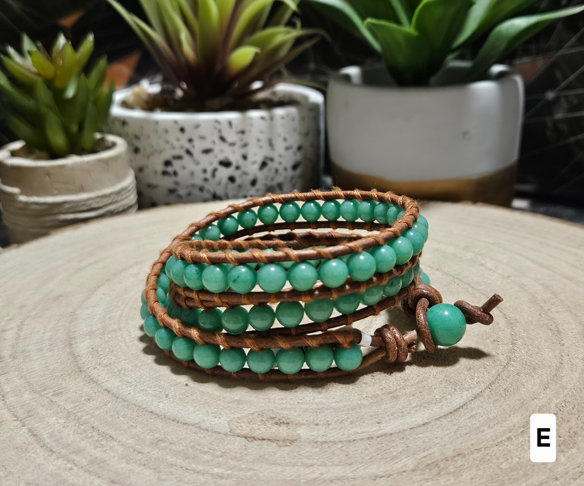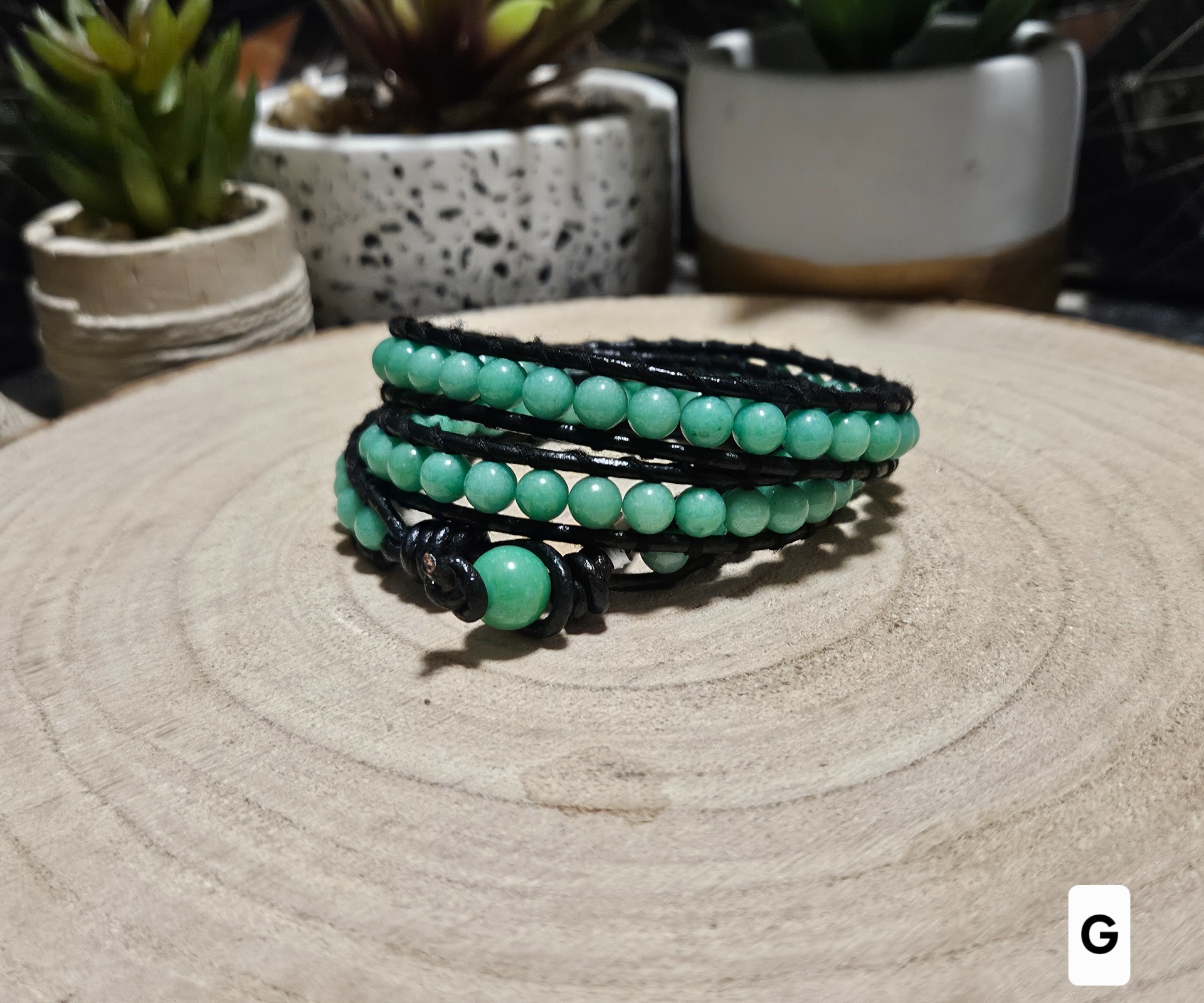The combination of natural leather and jadeite symbolizes a connection to the earth and inner strength. Jadeite in this vibrant color range promotes emotional stability and brings joy and optimism into your life. It is believed that jadeite protects the wearer from stress and helps maintain a clear mind even on challenging days. From a health perspective, this mineral harmonizes energy centers and supports the overall regeneration of the body, while contact with the leather provides the wearer with a sense of grounding and security.