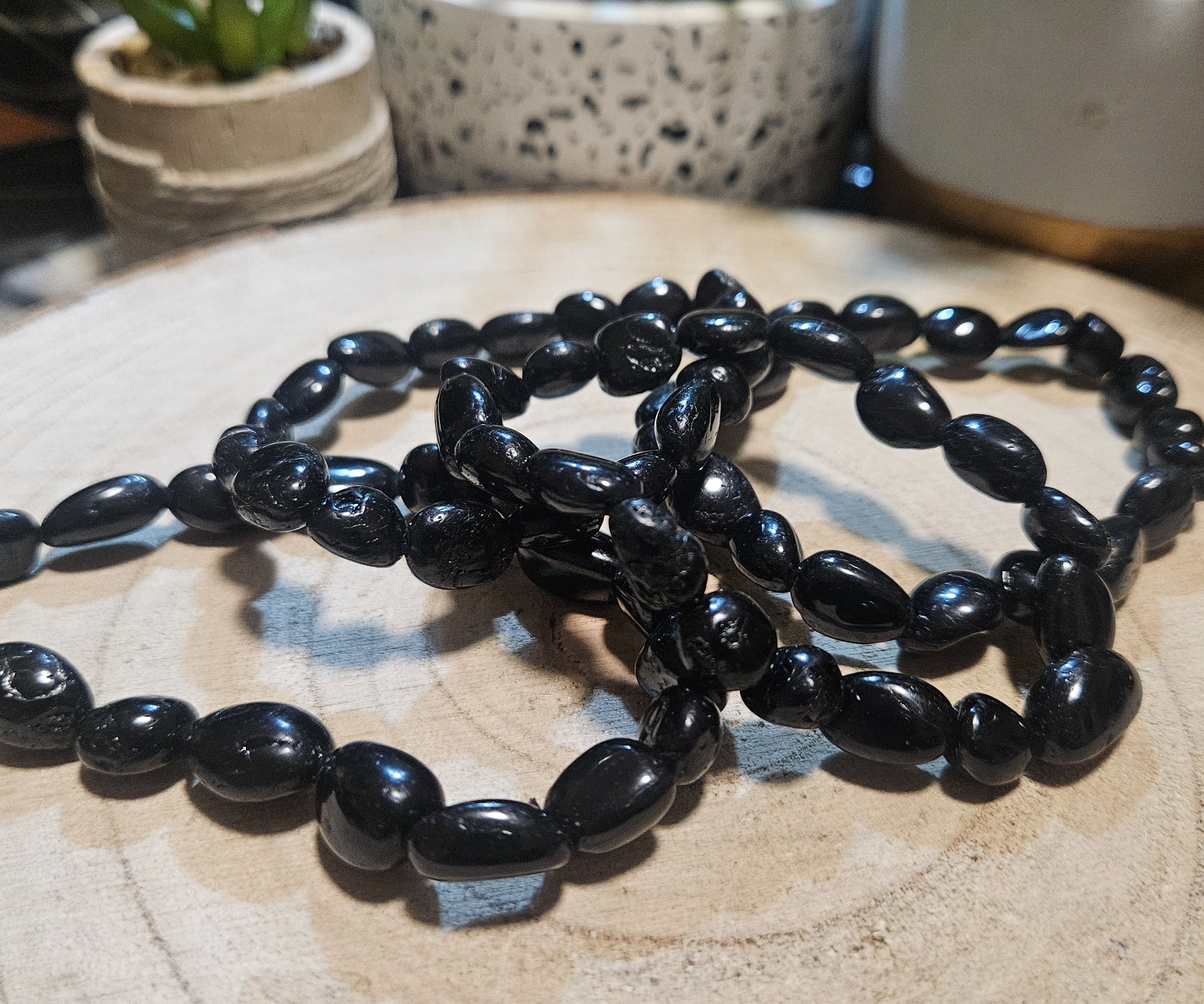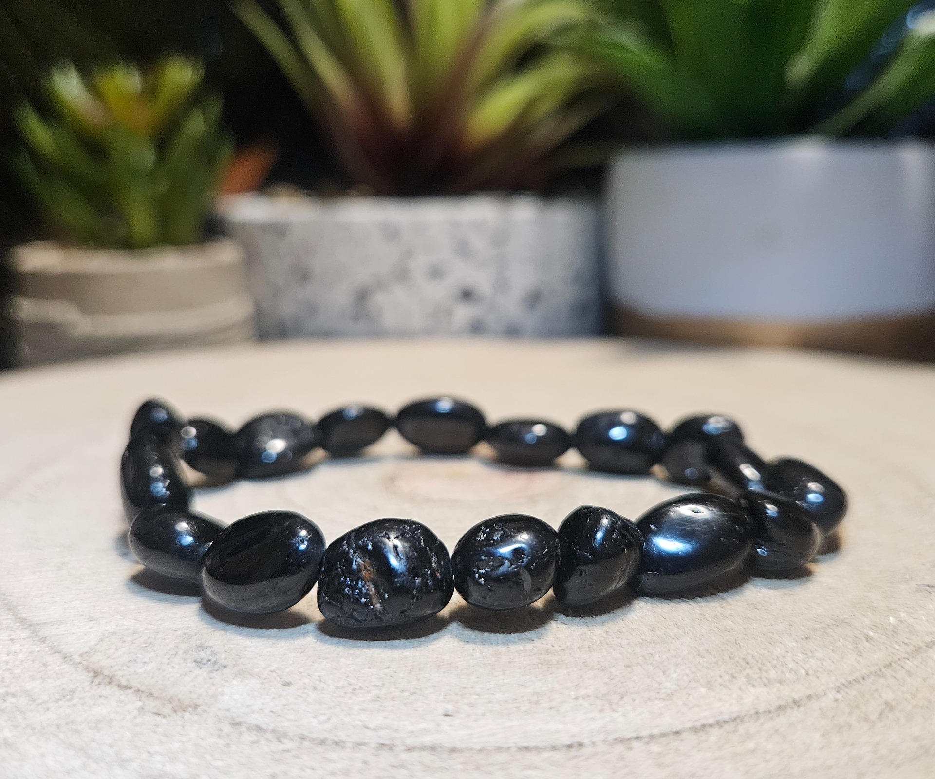 Z hľadiska zdravia je čierny turmalín (skoryl) považovaný za jeden z najsilnejších ochranných kameňov. Pomáha neutralizovať negatívne energie z okolia, ako je elektromagnetický smog z telefónov a počítačov. Tento náramok podporuje vnútorný pokoj, zmierňuje stres a napomáha k hlbšiemu, regeneračnému spánku. Jeho nosenie na zápästí stimuluje meridiány, čím posilňuje celkovú vitalitu organizmu.