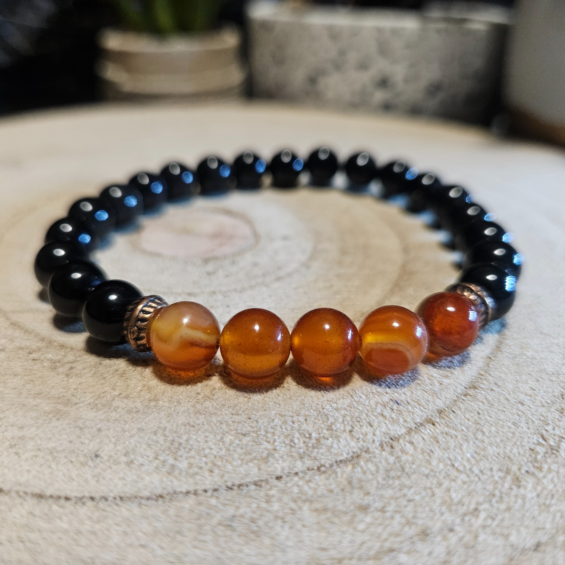 In your magical practice, this bracelet functions as a generator of action. While obsidian protects you from negative influences and grounds your intentions, carnelian provides the necessary fire for their realization. Witches use it in rituals focused on courage, creativity, or overcoming procrastination. It is the ideal talisman for anyone needing to transform their visions into reality while remaining energetically safe.