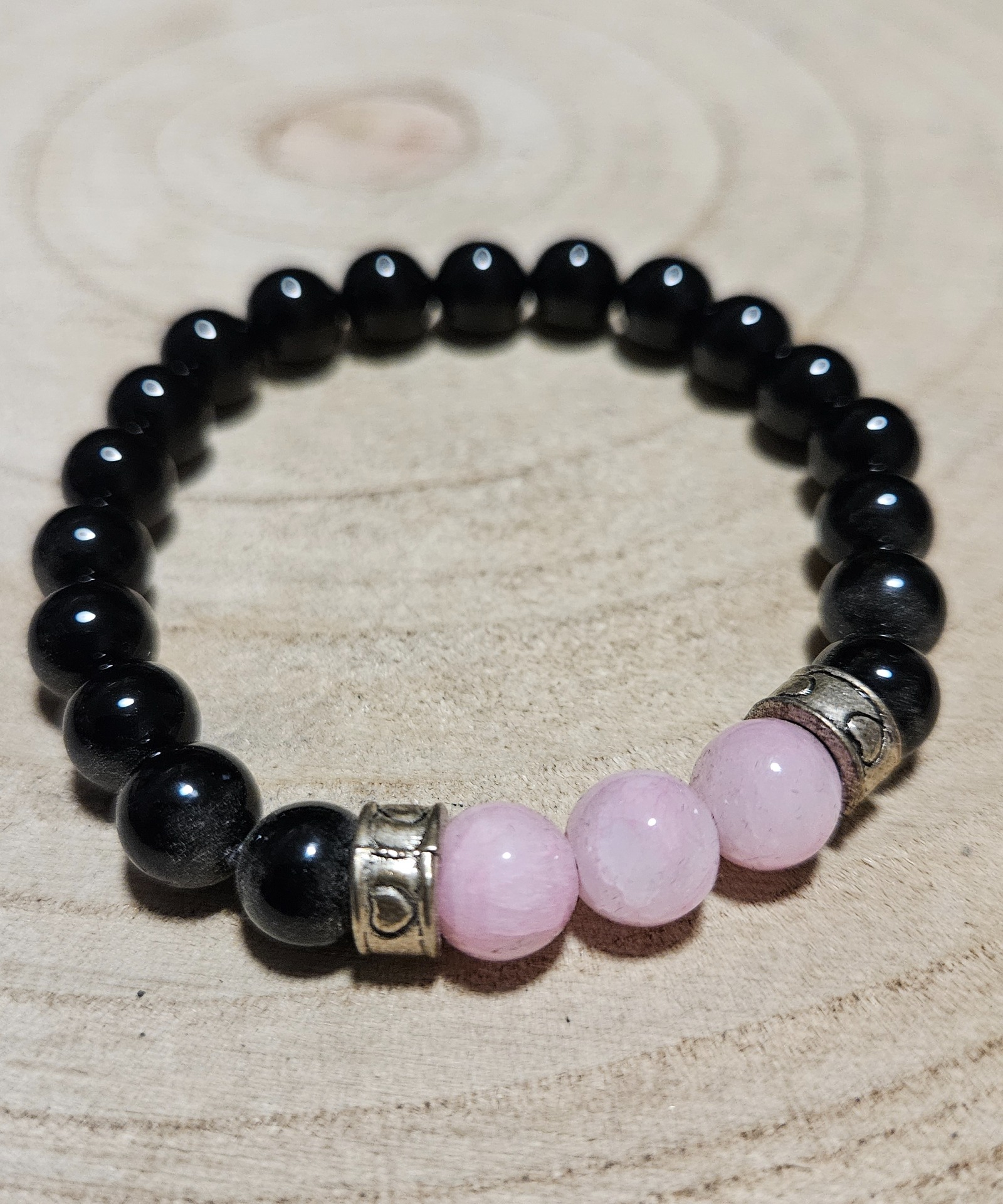 Ez a karkötő egyszerre működik energetikai pajzsként és a lélek balzsamaként. Az ónix hatalmas védelmező kő, amely erőt, kitartást ad, és segít megőrizni a nyugalmat stresszes helyzetekben. A rózsaszín jádeit ebbe a kombinációba kedvességet hoz, önszeretetre tanít és harmonizálja az érzelmi hullámvölgyeket. Együttműködve ezek az ásványok segítenek megtalálni az egyensúlyt az adás és elfogadás között. Fizikai szinten ennek a párosnak az immunrendszer támogatását és az érzelmi kimerültség utáni regenerációt tulajdonítják.