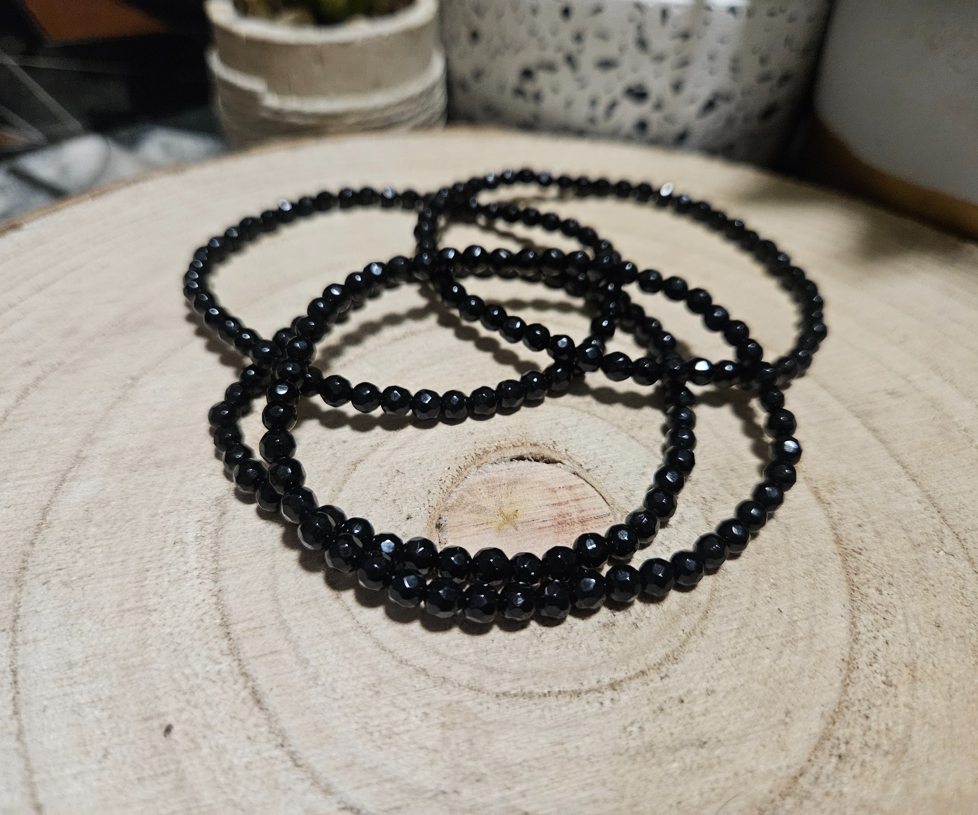 Tento jemný a sofistikovaný náramok "Imperial Spark" je vytvorený z precízne brúsených 4 mm korálok čierneho onyxu. Fazetovaný výbrus kameňov umožňuje náramku zachytávať a odrážať svetlo pri každom pohybe, čím dodáva tomuto ochrannému minerálu nádych luxusu a noblesy. Vďaka svojej decentnej veľkosti a pružnej gumičke je ideálny na vrstvenie s inými šperkami alebo ako samostatný, nenápadný talizman pre tých, ktorí hľadajú ochranu v elegantnom balení.