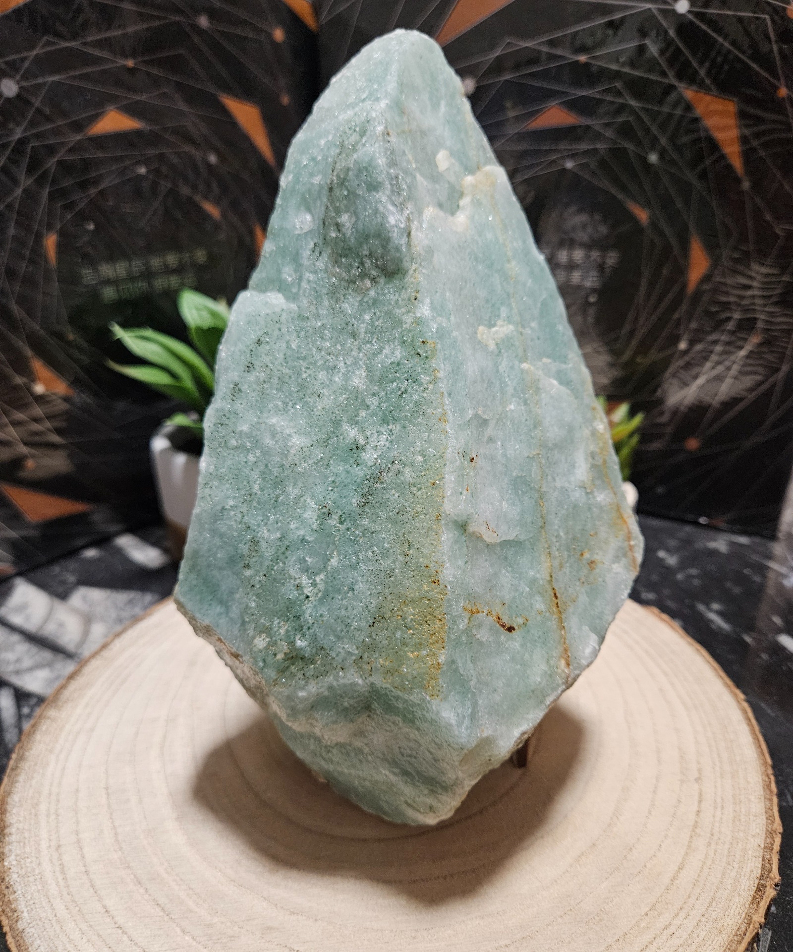 From a health perspective, this massive piece acts as the "lungs of the home." In this size, aventurine significantly supports the clearing of airways and soothes stress-induced heart palpitations. Its presence in a room helps lower blood pressure and counteracts chronic fatigue. As a stone of vitality, it helps the body draw new strength from the earth, strengthens eyesight, and has a beneficial effect on skin issues linked to nervous tension.