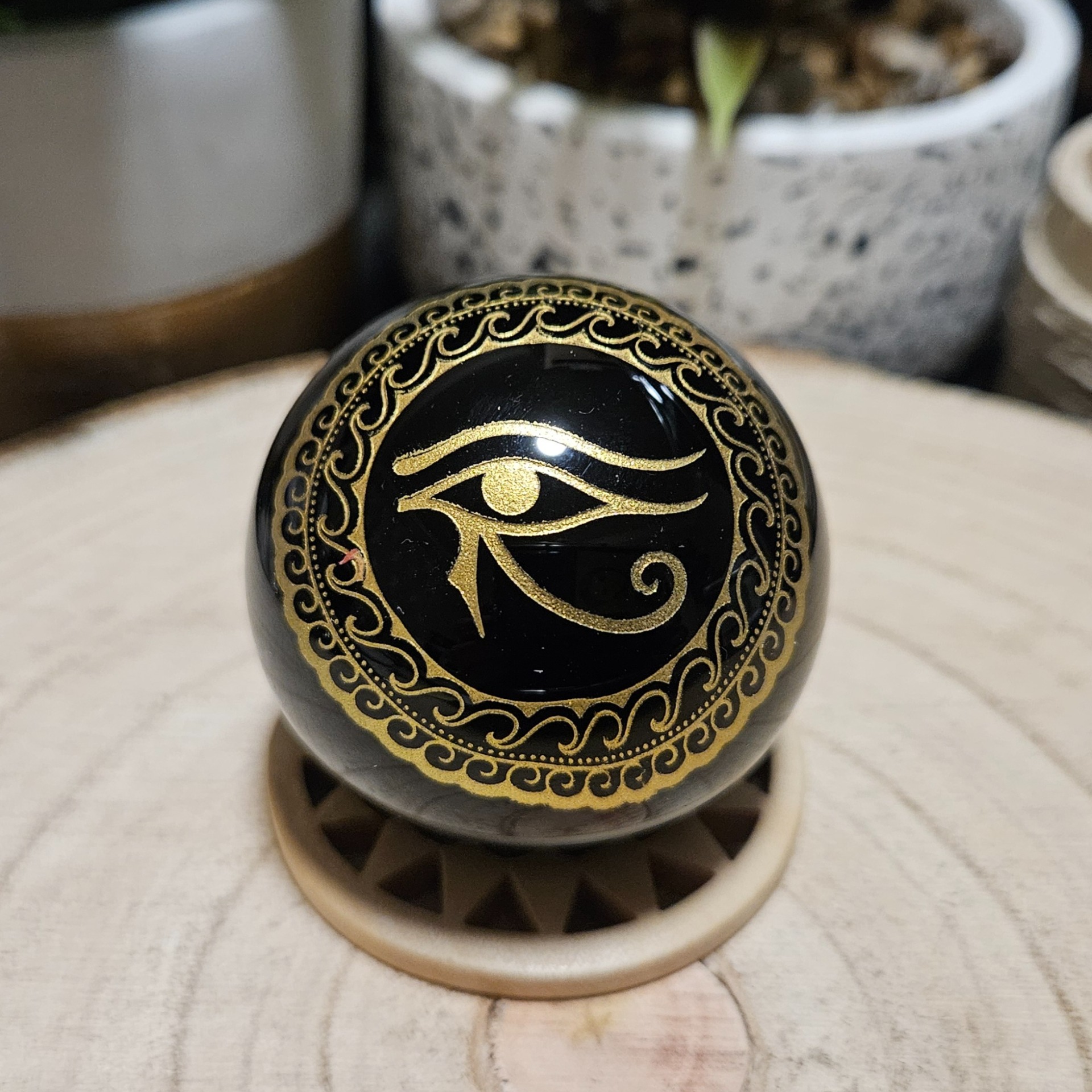 Vstúpte pod ochranu starovekých bohov s touto exkluzívnou guľou z línie Imperial. Čierny obsidián je zdobený zlatým symbolom Horovho oka (Wadjet), ktorý predstavuje kráľovskú moc, dobré zdravie a nezničiteľnú ochranu pred nepriateľmi. Tento kúsok je symbolom víťazstva svetla nad temnotou.