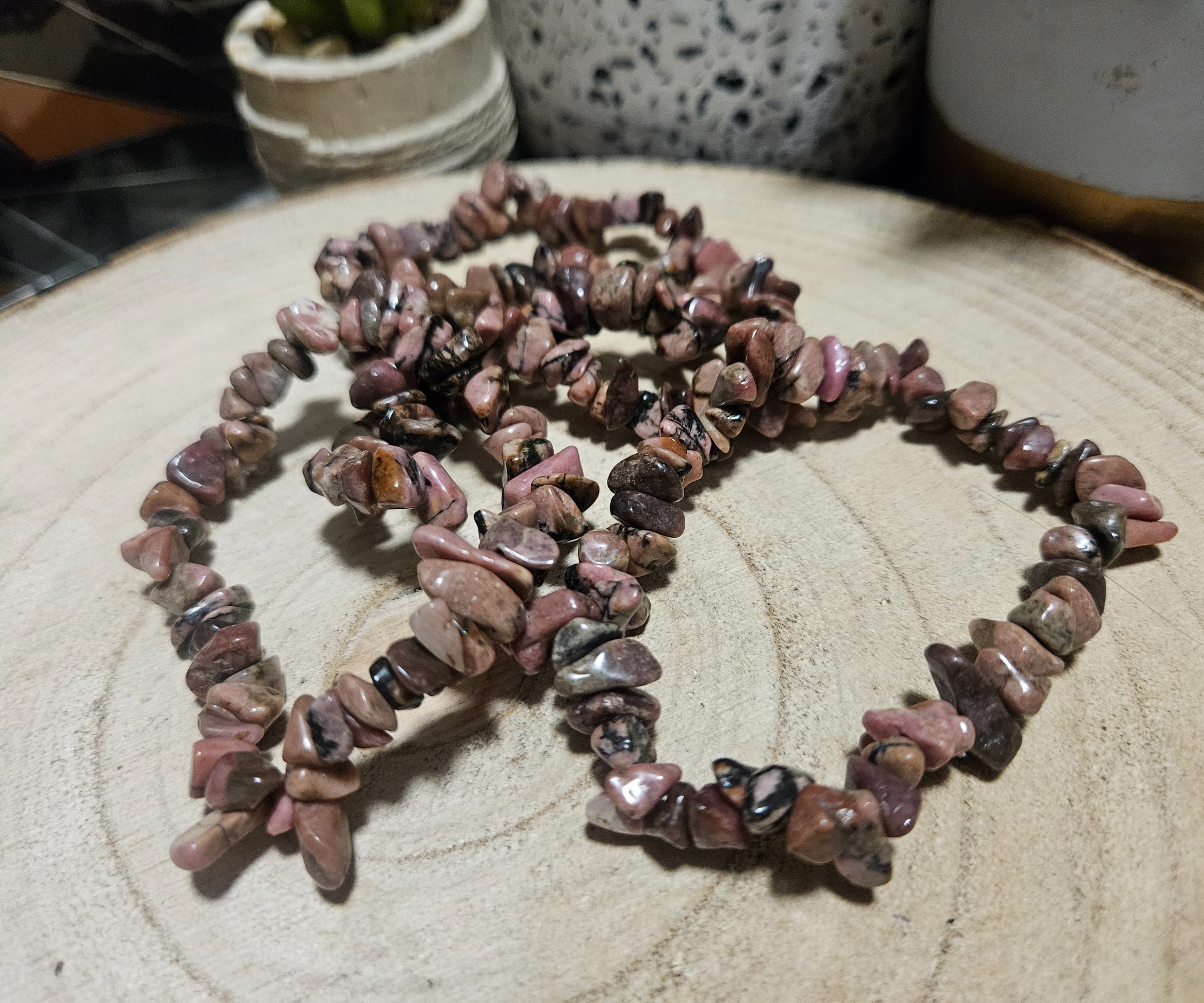 Rodokrozit splitter karkötő, gumidamilra fűzve, kb. 16-18 cm.