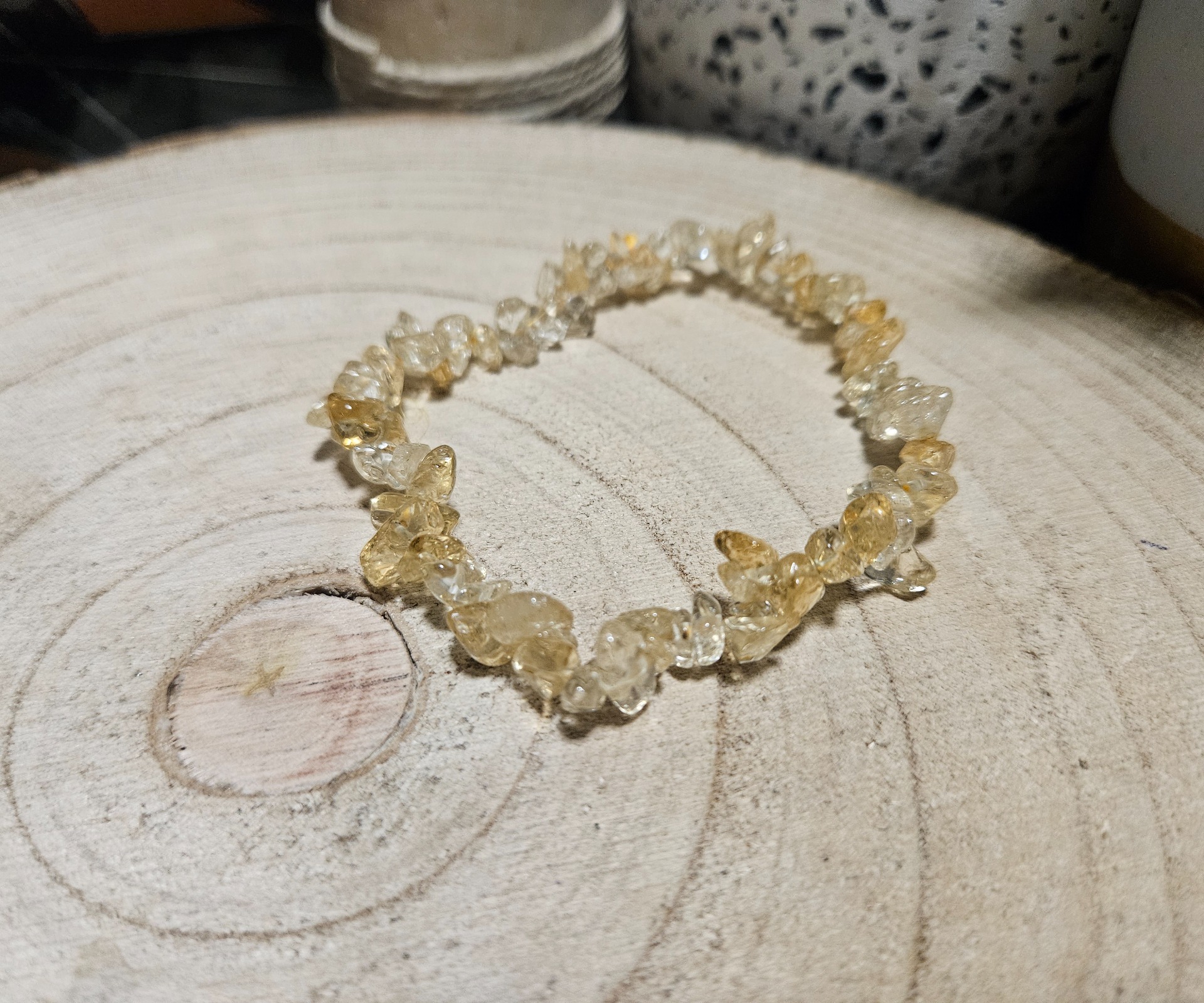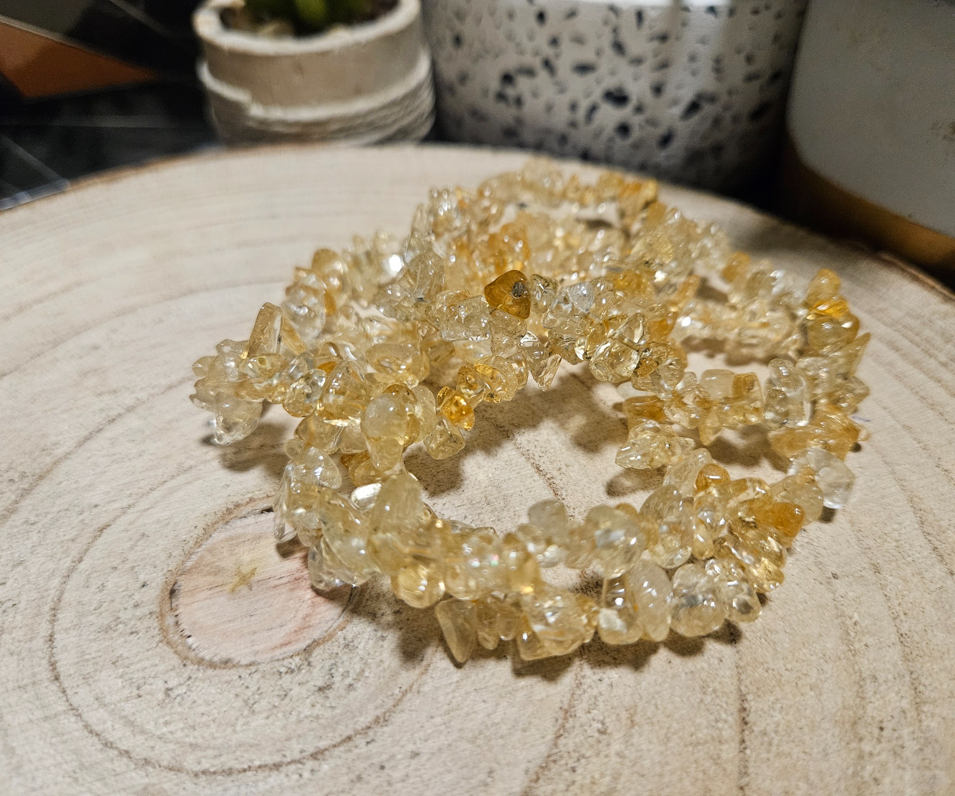 This Citrine Chip Bracelet brings the golden power of Citrine to you in its most natural form. The irregular, unpolished chip pieces are in direct contact with your skin, allowing the stone's raw, unfiltered energy to flow maximally. It is the perfect choice if you desire the vibrant vitality radiating from this yellow mineral!