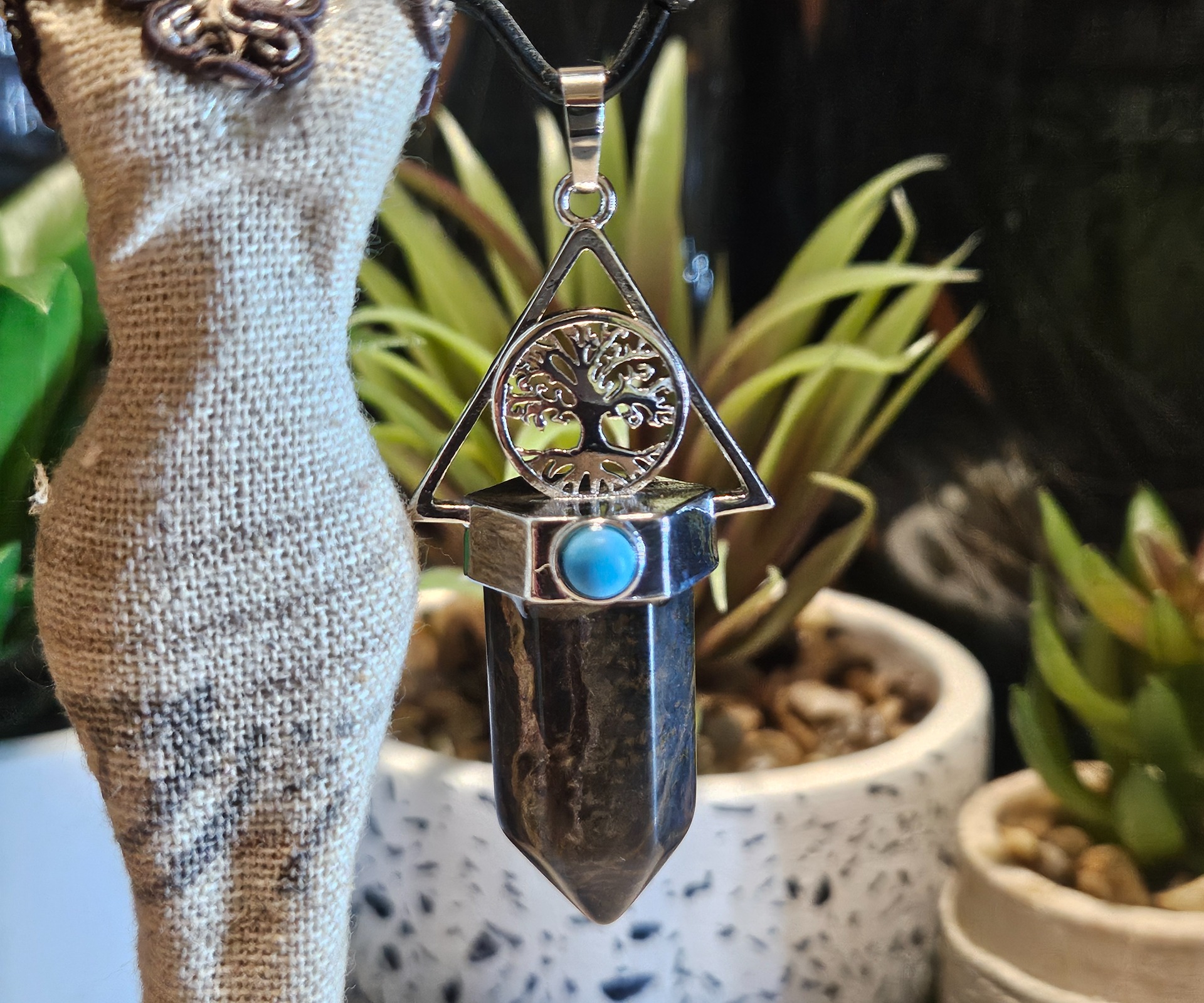 Imperial Tree of Vitality – Špička života (Prírodný minerál Tigrie oko – brúsený hrot s kovovým zdobením „Strom života“, 3x5,5 cm) 7,00 € 0,00 €